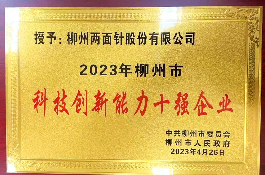 公司榮獲“2023年柳州市 科技創(chuàng)新能力十強(qiáng)企業(yè)”稱(chēng)號(hào)