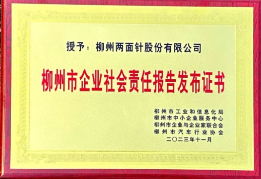 近期,由工業(yè)和信息化廳、企業(yè)與企業(yè)家聯(lián)合會等機構(gòu)聯(lián)合舉辦的“廣西企業(yè)社會責(zé)任報告發(fā)布會”“柳州企業(yè)社會責(zé)任報告發(fā)布會”相繼在南寧、柳州舉辦,涉及汽車制造、林木加工、食品加工、醫(yī)藥制造等多個領(lǐng)域,公司獲頒“企業(yè)社會責(zé)任報告發(fā)布證書”。